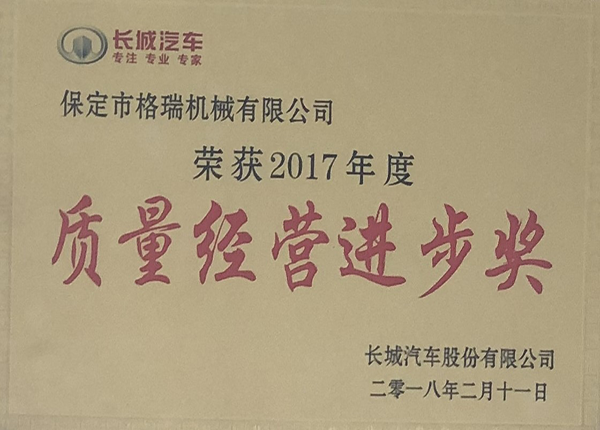 長(zhǎng)城汽車2017質(zhì)量經(jīng)營(yíng)進(jìn)步獎(jiǎng)