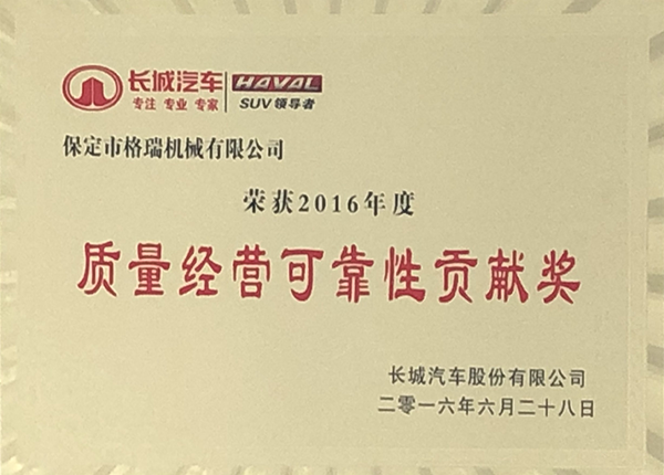 長(zhǎng)城汽車質(zhì)量可靠貢獻(xiàn)獎(jiǎng)
