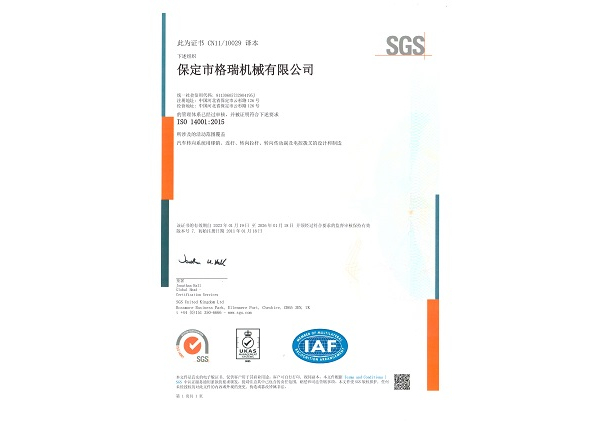 ISO14001:2015管理體系證書